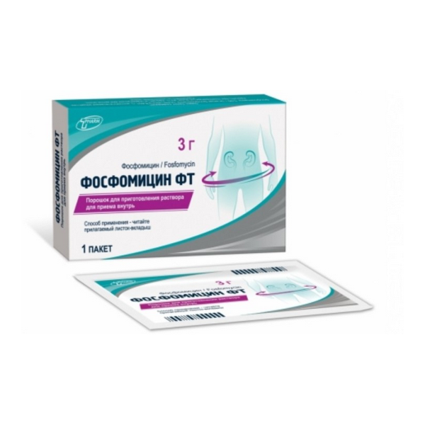 Препарат Фосфомицин ФТ содержит действующее вещество фосфомицин в виде фосфомицина трометамола. Фосфомицин - антибактериальное средство широкого спектра действия, производное фосфоновой кислоты, предназначенное для лечения инфекций мочевыводящих путей.