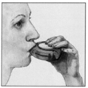 - Держите ингалятор на некотором расстоянии ото рта и сделайте глубокий выдох без усилия. Помните: никогда нельзя делать выдох в ингалятор!