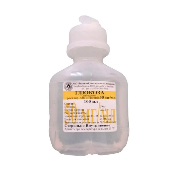 Глюкоза, раствор, 50 мг / 1 мл 100 мл ×1