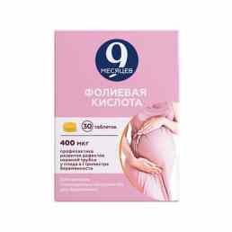 9 месяцев фолиевая кислота, таблетки, 400 мкг ×30