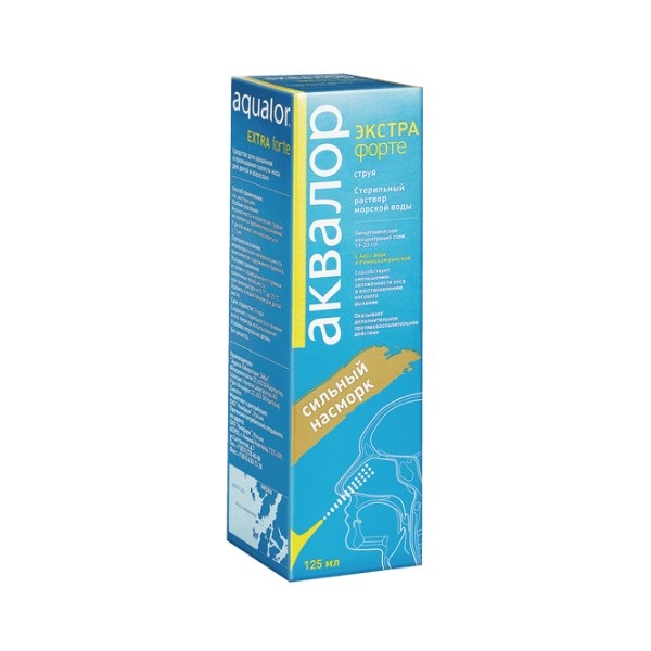 | Описание устройства изделия | средство для орошения и промывания полости носа для детей и взрослых «Аквалор® экстра форте с Алоэ вера и Ромашкой римской» 150 мл (далее по тексту средство) представляет собой аэрозоль в алюминиевом баллоне под давлением с полиэтиленовой анатомической насадкой для носа, создающей распыление «струя», с ограничительным кольцом и с полипропиленовым колпачком. Внутрь баллона помещен четырехслойный пакет с содержимым, снабженный специальным односторонним клапаном. Насадка имеет перемычку для контроля нажатия на аэрозольный клапан. Не является лекарственным средством. |