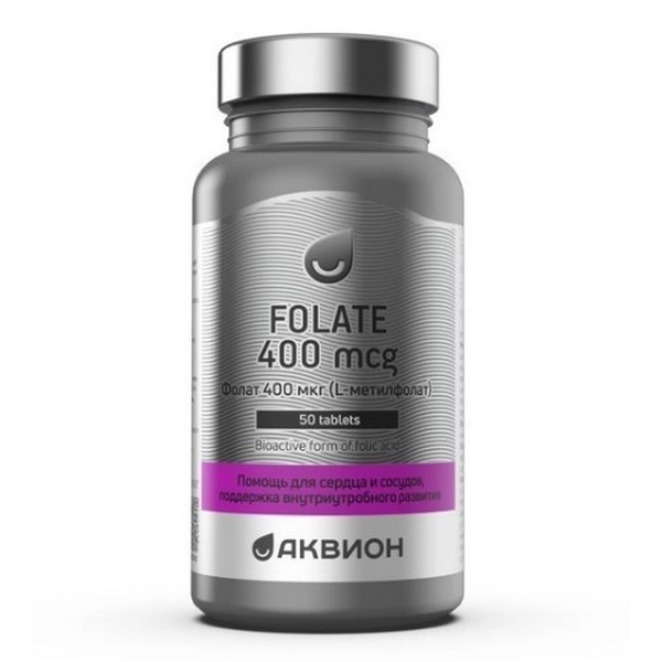АКВИОН ФОЛАТ 400МКГ (L-МЕТИЛФОЛАТ) (AKVION Folate 400 mcg (L-methylfolate)) - Биологически активная добавка (БАД) к пище - Помощь для сердца и сосудов, поддержка внутриутробного развития