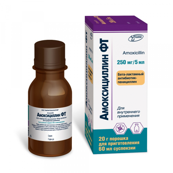 Амоксициллин фт, порошок, 250 мг / 5 мл 20 г x1