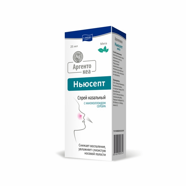 Аргентокеа Ньюсепт мята аналогичным образом распыляют по одному разу в каждый носовой ход 3-4 раза в сутки.