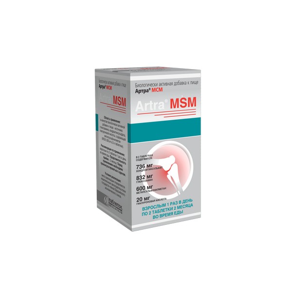 Артра® МСМ содержит высокие концентрации глюкозамина, хондроитина, гиалуроновой кислоты и метилсульфонилметана (МСМ), которые в комбинации обладают синергическим эффектом, дополняя и усиливая эффекты друг друга.