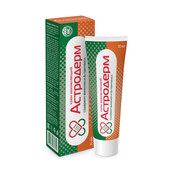Крем для ухода за кожей. Насыщенный питательный крем Астродерм обеспечивает быстрое восстановление естественных защитных функций кожи, целебные свойства активных компонентов заботливо помогают восстановить целостность кожных покровов и естественные защитные функции эпидермиса, ускоряют процессы обновления клеток, возвращают эластичность, упругость и гладкость. Входящие в состав растительные экстракты тысячелистника, календулы и винилин предотвращают от инфицирования повреждённую поверхность кожи, способствуют заживлению. Д-Пантенол, витамин Е, аллантоин питают, смягчают роговой слой, успокаивают раздражения и воспаление, способствуют эпителизации и регенерации.