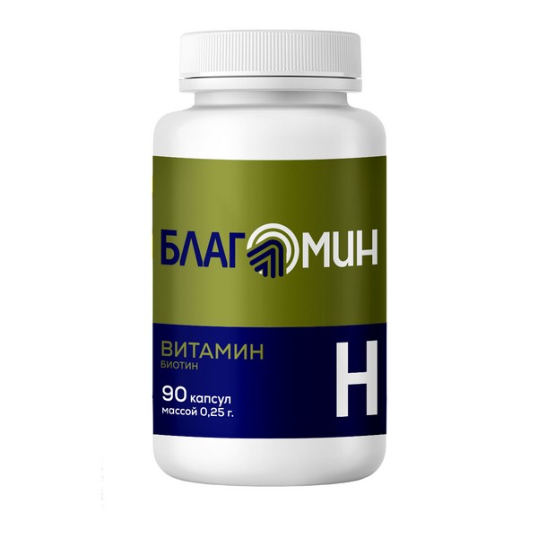 Благомин Биотин - дополнительный источник витамина Н. 1 капсула содержит 150 мкг биотина, что составляет 300 % от рекомендованного уровня суточного потребления и не превышает верхний допустимый уровень потребления.