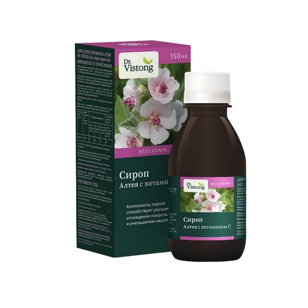 «Dr. Vistong» Сироп Алтея с витамином С рекомендуется в качестве продукта диетического лечебного и профилактического питания – дополнительного источника витамина С, способствующего облегчению симптомов простуды у детей и взрослых. Компоненты сиропа способствуют улучшению отхождения мокроты и уменьшению кашля.