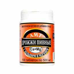 Дрожжи пивные-амт с кальцием и магнием, таблетки, 500 мг ×100