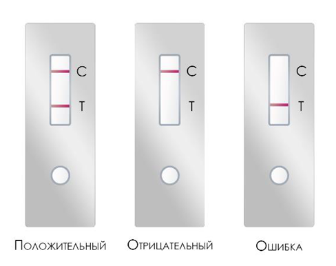 Примечание: за положительный результат необходимо принимать любую по интенсивности окрашивания тестовую линию в зоне считывания результатов.