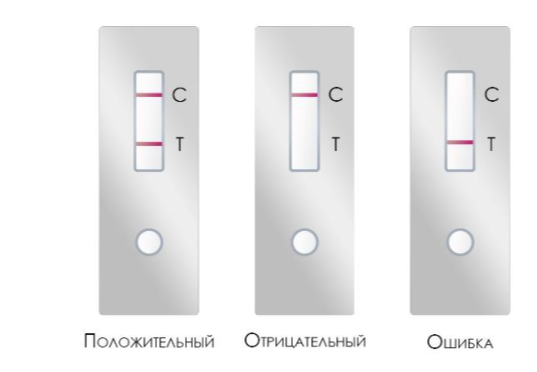 Примечание: за положительный результат необходимо принимать любую по интенсивности окрашивания тестовую линию в зоне считывания результатов.