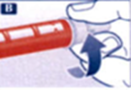 F. Держа шприц-ручку ФлексПен иглой вверх, несколько раз слегка постучите по картриджу кончиком пальца, чтобы пузырьки воздуха переместились в верхнюю часть картриджа.