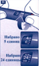 Н. Поворотом селектора дозы наберите количество единиц, необходимое Вам для инъекции.