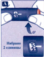 Е. Наберите 2 единицы препарата поворотом селектора дозы.