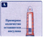 Шкала остатка инсулина показывает приблизительное количество инсулина, оставшееся в шприц-ручке (рис. А).