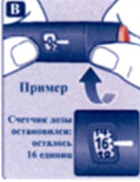 Если счетчик дозы показывает меньше 80, это означает, что в Вашей шприц-ручке осталось именно то количество единиц инсулина, которое отобразилось на счетчике дозы (рис. В).