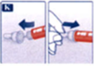 К. Направьте иглу в большой наружный колпачок иглы, не трогая колпачок. Когда игла войдет внутрь, полностью наденьте колпачок и отвинтите иглу.
