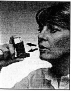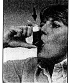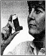 | 4 Держите ингалятор вертикально, положив большой палец на основание под мундштуком. Выдохните, насколько удобно. Больше не вдыхайте. |