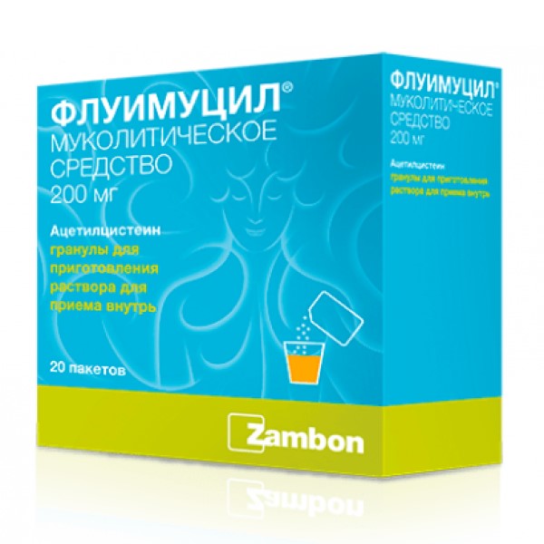 Флуимуцил, 200 мг, гранулы для приготовления раствора для приема внутрь содержит 84 мг глюкозы в каждом пакете. Если у Вас или Вашего ребенка имеется непереносимость некоторых сахаров или если Вам или Вашему ребенку поставили диагноз редко встречающаяся глюкозо-галактозная мальабсорбция, поговорите со своим врачом, прежде чем вы начнете применять этот лекарственный препарат.