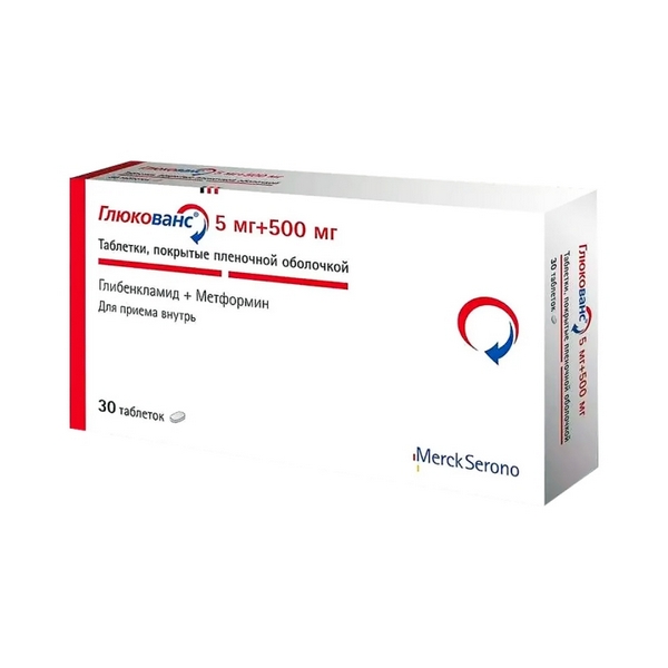 Глюкованс, таблетки, 500 мг+5 мг x30