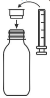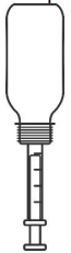 3. Перевернуть флакон со шприцем в исходное вертикальное положение. Убедиться, что поршень шприца не сместился и наконечник поршня по-прежнему располагается на уровне нужной метки. Вытянуть шприц из отверстия вкладыша (вкладыш следует оставить зафиксированным в горлышке флакона). Закрыть флакон крышкой.