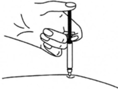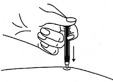 8. Одним быстрым движением полностью введите иглу в кожную складку.