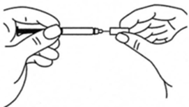 На данном этапе не следует снимать колпачок шприца