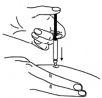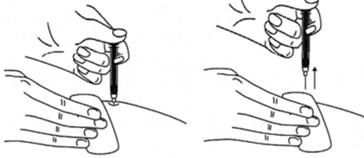 9. После введения иглы отпустите складку кожи.