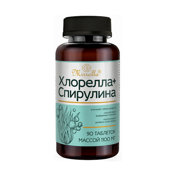 Хлореллы порошок, микрокристаллическая целлюлоза, спирулины порошок, кальция фосфат, тальк (агенты антислеживающие).