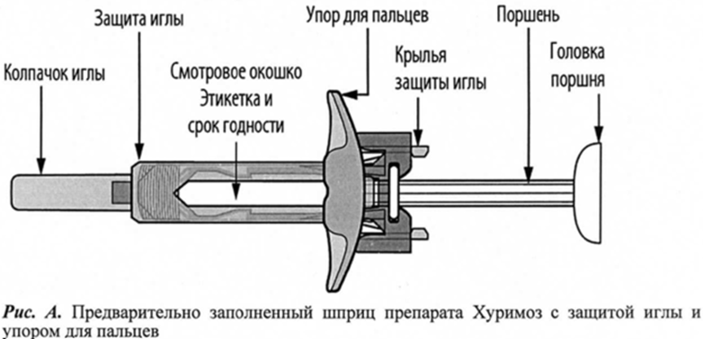 - предварительно заполненный(-е) шприц(-ы) препарата Хуримоз (см. рис. А).