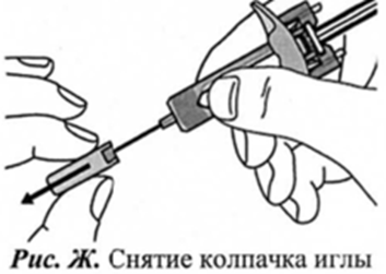 снять ее с предварительно заполненного шприца (см. рис. Ж).