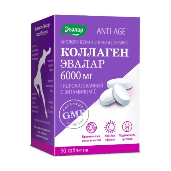 Коллаген гидролизованный (пептиды), кроскарамеллоза и целлюлоза микрокристаллическая (носители); компоненты пленочного покрытия (пищевые добавки): гидроксипропилметилцеллюлоза (загуститель), твин 80 (эмульгатор), полиэтиленгликоль (глазирователь); кальция стеарат (агент антислеживающий), аскорбат кальция (витамин С).