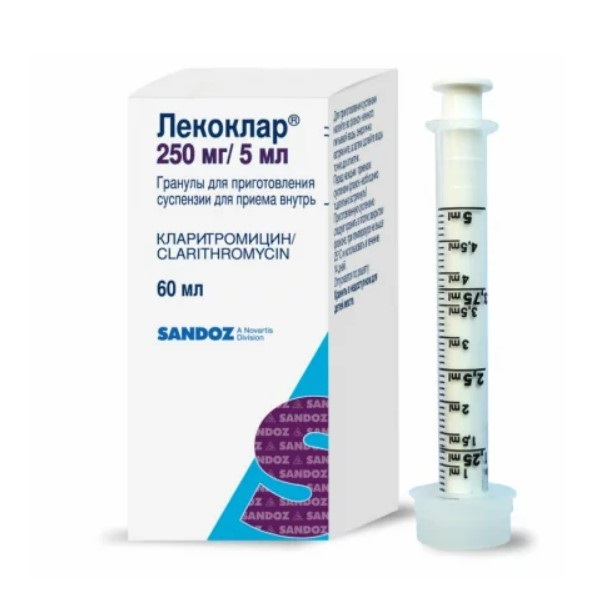Лекоклар, гранулы, 250 мг / 5 мл 60 мл x1