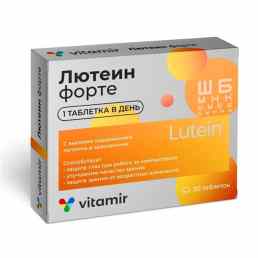 Лютеин форте витамины для глаз витамир, таблетки ×30 Квадрат-С, Россия • Без рецептаБАДИнструкция17,72 — 25,97 р.Где купитьВ корзину