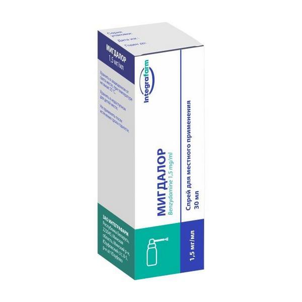 Действующим веществом препарата Мигдалор является бензидамина гидрохлорид. Мигдалор относится к нестероидным противовоспалительным препаратам (НПВП), обладает местным противовоспалительным действием, а также оказывает местное обезболивающее действие на слизистую оболочку полости рта. Препарат Мигдалор используется для симптоматического местного лечения воспалительных заболеваний полости рта и глотки, сопровождающихся болевым синдромом (например: гингивит, стоматит, фарингит), а также после консервативного лечения или удаления зубов.