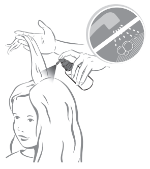 1. Тщательно распылите раствор НЮДА® экспресс на сухие волосы.