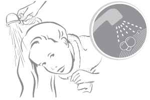 После расчесывания вымойте волосы от НЮДА® экспресс обычным шампунем. При необходимости удалить остатки раствора после первого мытья волос, промойте волосы еще раз.