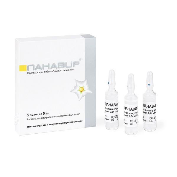Панавир® – очищенный экстракт побегов растения Solanum tuberosum; основное действующее вещество – гексозный гликозид, состоящий из глюкозы, рамнозы, арабинозы, маннозы, ксилозы, галактозы, уроновых кислот.