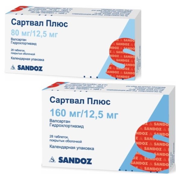Сартвал плюс, таблетки, 160 мг+12.5 мг ×28