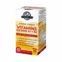 Биологически активная добавка к пище «Sense of Life Витамины D3 2000 МЕ + К2 (Vitamins D3 2000 IU + K2)»