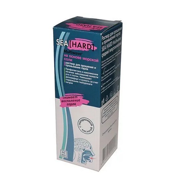Раствор для орошения и промывания горла средний гипертонический «SEA HARD Multiwave» способствуя физическому удалению избытка жидкости и слизи снимает отек и заложенность рта и глотки