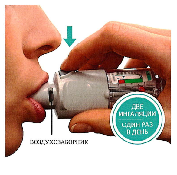 Вам нужно будет использовать этот ингалятор только ОДИН РАЗ В ДЕНЬ. Каждый раз при применении его делайте ДВЕ ИНГАЛЯЦИИ.