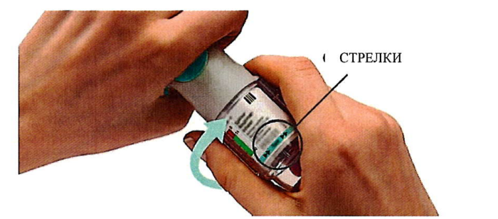 • Для получения второй ингаляционной дозы повторите: Поверните, Откройте, Нажмите.