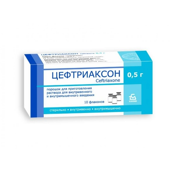 Один флакон содержит – цефтриаксона 0,5 г или 1,0 г (в виде цефтриаксона натриевой соли).