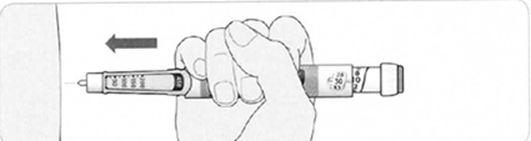 Е После удерживания кнопки введения дозы и счета до пяти отпустите кнопку введения дозы. Затем извлеките иглу из кожи.