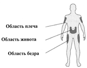 Вводите препарат в переднюю часть бедра, плечо или переднюю часть брюшной стенки (живота).