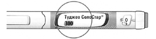 Если Вы применяете более одного инсулина, всегда проверяйте, что Вы вводите верный инсулин, проверяя этикетку инсулина перед каждой инъекцией. Сообщалось о медицинских ошибках, когда другие инсулины, особенно инсулины короткого действия, были случайно введены вместо инсулина длительного действия. Дозировка «300» выделена медово-золотым цветом на этикетке предварительно наполненной шприц-ручки Туджео Солостар®. В случае сомнений, проконсультируйтесь со своим лечащим врачом.