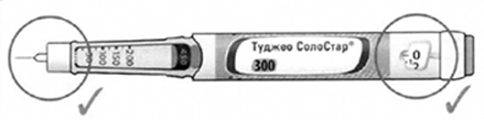 В окне индикатора дозы шприц-ручки Солостар® показано количество единиц препарата Туджео, предназначенных для введения. Не проводите дополнительные пересчеты дозировки.