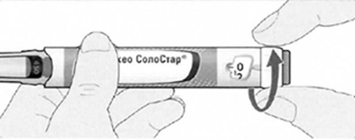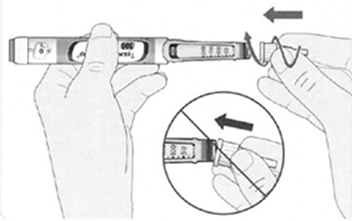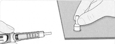 С Снимите наружный колпачок иглы. Сохраните его для использования в дальнейшем.