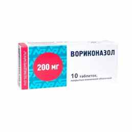активное вещество', вориконазол 200 мг (что эквивалентно концентрации раствора после разведения, составляющей 10 мг/мл).